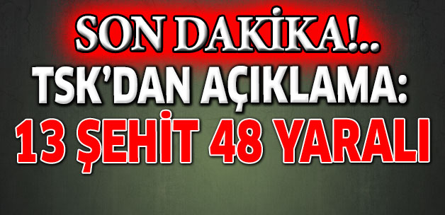 TSK: 13 ASKERİMİZ ŞEHİT, 48 YARALIMIZ VAR