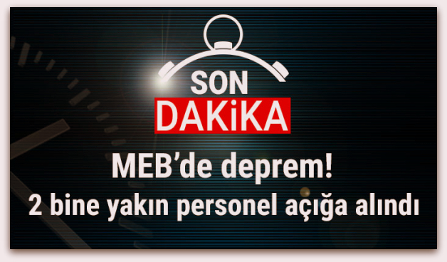 MEB'de aralarında öğretmenlerin de bulunduğu bin 980 personel hakkında, FETÖ terör örgütüyle irtibatlı oldukları gerekçesiyle görevden uzaklaştırma tedbiri alındı.