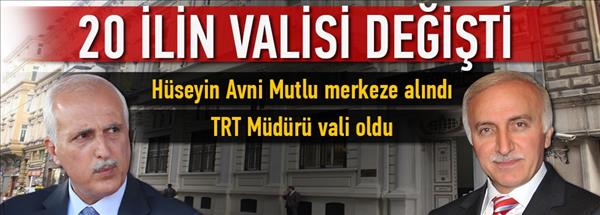 Buna göre, İstanbul Valisi Hüseyin Avni Mutlu, Balıkesir Valisi Ahmet Turhan, Osmaniye Valisi Mehmet Oduncu, Çorum Valisi Sabri Başköy, Denizli Valisi Abdülkadir Demir, Erzincan Valisi Abdurrahman Akdemir, Diyarbakır Valisi Mustafa Cahit Kıraç, Bayburt Valisi Mükerrem Ünlüer ve Kamu Düzeni ve Güvenliği Müsteşarı Mehmet Ulvi Saran Merkez Valiliği’ne getirildi.