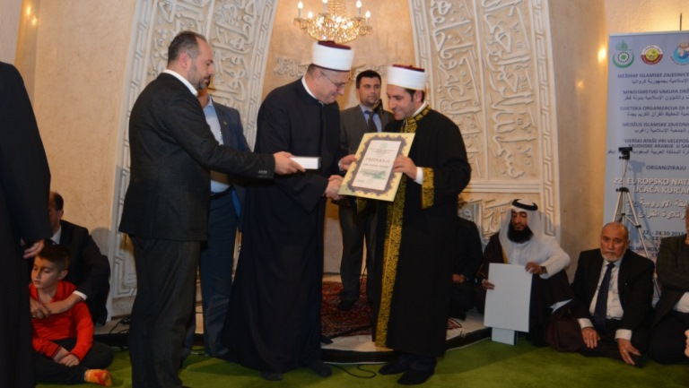 Dünya Kur’an Okuma Birincisi Hafız Selman Okumuş’a, Hırvatistan Baş Müftüsü Aziz Hasanoviç’ten Onur Ödülü verildi.