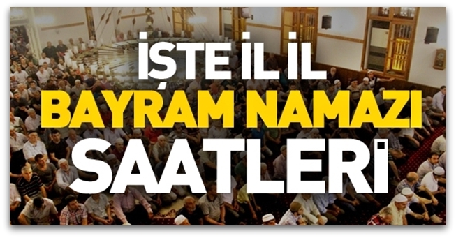 Bayram namazı, Ramazan ve Kurban'da olmak üzere yılda iki defa kılınan iki rek’atlık bir namazdır. 12 Eylül 2016 Pazartesi günü idrak edeceğimiz Kurban Bayramı öncesi İstanbul'da bayram namazı saati 07.22 olarak belirlendi. Diyanet İşleri Başkanlığı Kurban bayram namazı saatlerini İstanbul, Kayseri, Kahramanmaraş, Ankara, Eskişehir, Erzurum, Antalya, Samsun, İzmir, Van, Sivas, Mersin, Adana ve Edirne başta olmak üzere listeledi. Bayram namazı tan yeri ağarırken kılınıyor. Buna göre de Diyanet bayram namazı saatlerini belirliyor. Doğu illerinde bayram namazı daha erken kılınacak. Batı illeri de geç saatte camileri dolduracak.