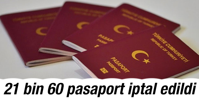 15 Temmuz darbe girişiminin ardından 21 bin 60 pasaport iptal edildi.