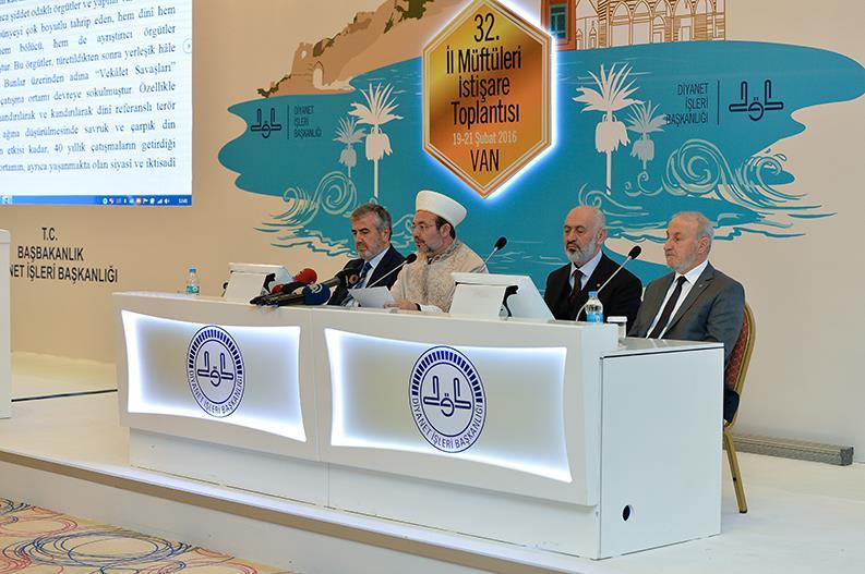 81 İl Müftüsünün, Diyanet İşleri Başkanlığının üst düzey yöneticilerinin, Türkiye Diyanet Vakfı yöneticilerinin ve bu yıl ilk defa her ilin en büyük ilçesinin müftülerinin katıldığı istişare toplantısı, değerlendirme oturumunun ardından Diyanet İşleri Başkanı Prof. Dr. Mehmet Görmez’in sonuç bildirgesini kamuoyuyla paylaşmasıyla sona erdi.