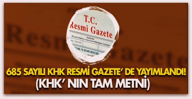 685 sayılı KHK\'nın tam metni