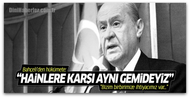 MHP Lideri hükümete seslenerek "Hainlere karşı aynı gemide, aynı siperde, aynı çizgideyiz!" dedi.