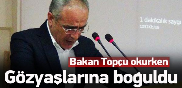 Bakan Topçu, İskilip Halk Eğitim Merkezi toplantı salonunda düzenlenen "İskilipli Atıf Hoca" konulu konferansta göz yaşlarına hakim olamadı.