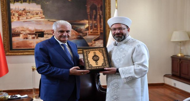 Diyanet İşleri Başkanı Erbaş’ın Başbakan Yıldırım’ı kapıda karşıladığı ziyaret, basına kapalı gerçekleştirildi.