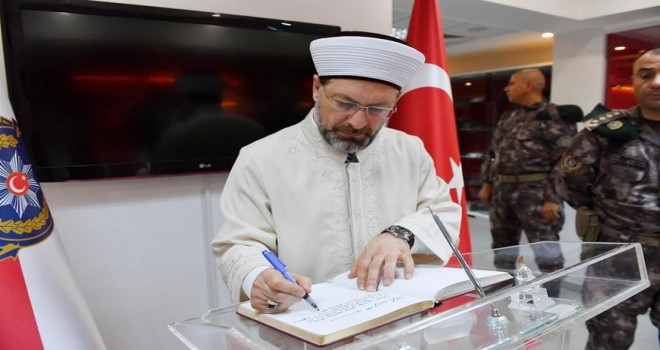 Diyanet İşleri Başkanı Prof. Dr. Ali Erbaş, 15 Temmuz hain darbe girişimi sırasında teröristlerin bombalayarak 44 güvenlik görevlimizi şehit ettiği Gölbaşı’nda bulunan Emniyet Özel Harekât Başkanlığı’nı ziyaret etti.