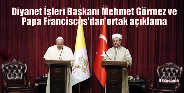 Diyanet İşleri Başkanı Mehmet Görmez ve Papa Franciscus’dan ortak açıklama