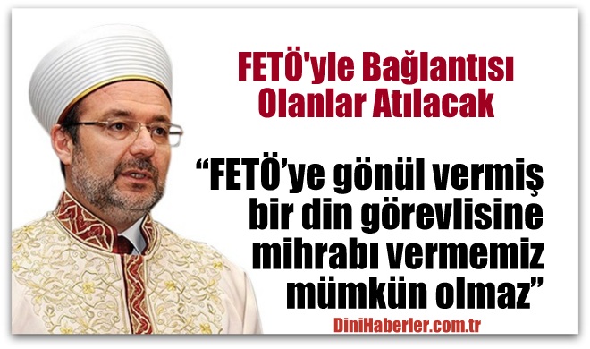 Darbeden önce biz pek çok tespitimizi yapmıştık, ancak mahkemelerden dönülüyordu. Fakat darbeden sonra kılı kırk yararcasına, yanlışla doğruyu birbirinden ayırmak için çok yoğun bir çaba içerisine girerek çalışmalarımızı sürdürüyoruz. Şu ana kadar 3 bin 600 kadar görevlimiz açığa alındı, ama tabi soruşturmalarımız devam ediyor. En küçük yanlış bir bilgi ortaya çıktığı zaman arkadaşlarımız tekrar kendi görevlerine dönecekler, hiç kimsenin endişesi olmasın. Ama bu yapıyla en küçük bir gönül bağı kurmuş herhangi bir kimseyle de yolumuza devam etmemiz mümkün değil. Mihrabı bu yapıya gönlünü kaptırmış herhangi bir din görevlisine vermemiz de doğru olmaz, mümkün olmaz. Çok büyük travmalar yaşadık, bundan sonra bu hatalara düşmemek için daha yoğun bir çaba içerisinde olmamız gerekiyor.
