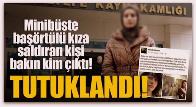Lise öğrencisi F.D.A.Y., Pendik-Kadıköy hattındaki minibüste giderken, bir kadının başörtüsü nedeniyle kendisine hakaret ve darp ettiği iddiasıyla şikayette bulundu. Olaya ilişkin gözaltına alınan şüpheli Almila Kursar, emniyetteki işlemlerinin ardından Kartal'daki Anadolu Adalet Sarayı'na getirildi.