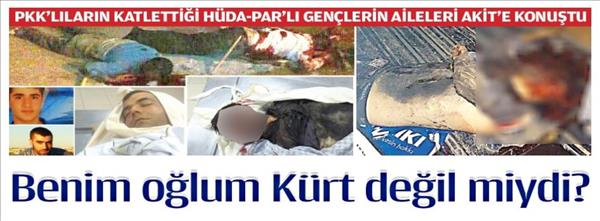 Kobani bahanesiyle ülkeyi savaş alanına çeviren PKK’lı provokatörlerin Güneydoğu’da acımasızca katlettiği HÜDA-PAR’lı gençlerin aileleri Akit’e konuştu.