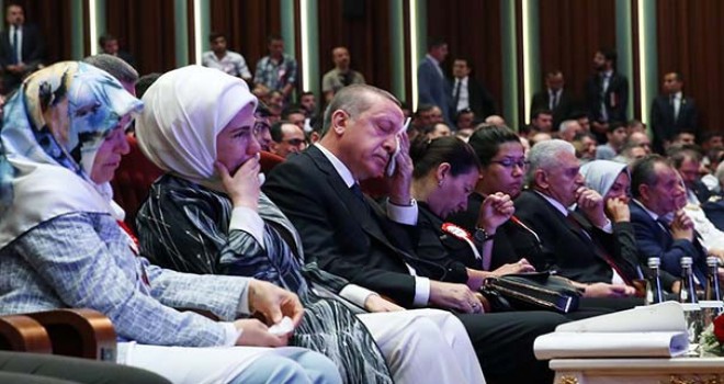 Cumhurbaşkanı Recep Tayyip Erdoğan, TBMM Başkanı İsmail Kahraman, Başbakan Binali Yıldırım, Genelkurmay Başkanı Orgeneral Hulusi Akar, Bakanlar, Diyanet İşleri Başkanı Prof. Dr. Mehmet Görmez, şehit aileleri ve gazilerin katıldığı programda konuşan Cumhurbaşkanı Erdoğan, "Şehitlerimizin emaneti olan yakınlarına ve tüm milletimize başsağlığı dileklerimi tekraren ifade ediyorum. Gazilerimize sağlıklı ve huzurlu bir hayat diliyorum, tedavileri halen süren gazilerimize Rabbimden acil şifalar niyaz ediyorum" dedi.