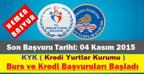 Kredi Yurtlar Kurumu (KYK) tarafından üniversite öğrencilerine verilecek kredi ve burs başvurularının süresinde son iki gün. Başvurular 04 Kasım 2015 günü sona erecek. KYK bursu ve kredisi kazanan öğrencilere, ocaktan itibaren ödeme yapılacak.