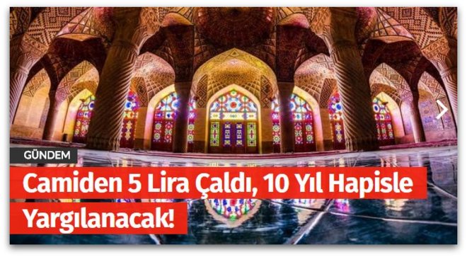 Bakırköy'de 9 ay önce caminin imam odasındaki dolabından 5 TL çaldığı iddia edilen B.S.'nin (17) “Kamu kurum ve kuruluşlarındaki eşya hakkında hırsızlık" suçundan 5 yıldan 10 yıla kadar hapsi istendi. İddianame kabul edilirse B.S. önümüzdeki günlerde Bakırköy Çocuk Mahkemesi'nde hakim karşısına çıkacak.