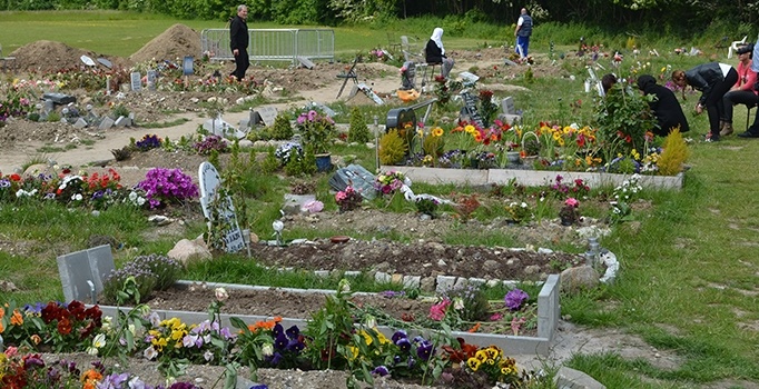 Mezarlıkta yakınları yatan Müslümanlar, polisin açıklamasıyla mezarlığa akın etti.