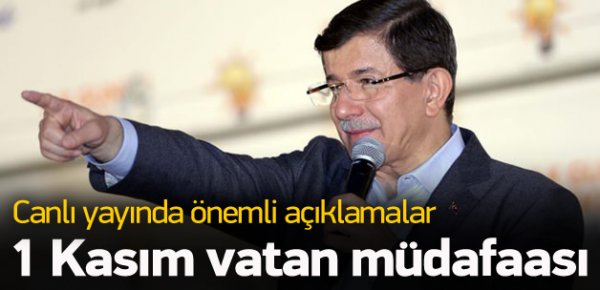 Canlı yayına katılan Başbakan Davutoğlu, 1 Kasım seçimlerinin vatan müdafaası olduğunu söyledi.