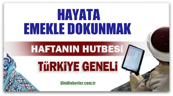 DİYANET HABER-Haftanın Hutbesi, Türkiye Geneli... Diyanet İşleri Başkanlığı tarafından hazırlanan “. HAYATA EMEKLE DOKUNMAK ..” isimli hutbe 14.10.2016 Cuma günü Türkiye geneli bütün camilerde okunacaktır. Diyanet Cuma hutbesinin tam metnini sitemizden okuyabilir, dilerseniz bilgisayarınıza indirebilirsiniz..