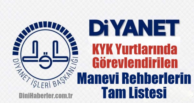 Diyanet İşleri Başkanlığı tarafından 2015 yılından bu yana Kredi ve Yurtlar Kurumu yurtlarında öğrencilere manevi danışmanlık ve dini rehberlik yapmak üzere personel görevlendirmesi yapılmıştır. Alınan dönütler bu çalışmanın nitelik ve nicelik olarak artarak devam ettirilmesini zorunlu kılmıştır. 2018-2019 eğitim öğretim yılı 2. dönem (25.03.2019-25.09.2019) görevlendirme listesinin tamamı sitemizde.
