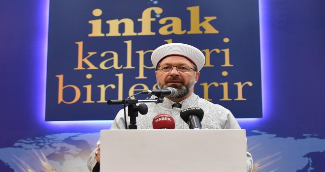 Başkan Erbaş, Diyanet İşleri Başkanlığı olarak her Ramazan ayında İslam’ın hayat veren ilkelerinden birini gündeme taşıdıklarını belirterek, “Bu yıl da yardımlaşmanın, dayanışmanın ve kaynaşmanın kilit kavramlarından biri olan “infak” temasını gündeme taşıyoruz. “Ramazan ve İnfak” birbiriyle bütünleşen iki yüce değer olarak bu yıl oruç ayında gerçekleştireceğimiz faaliyetlerimize mihver olacak. “İnfak Kalpleri Birleştirir” sloganıyla müminleri maddi ve manevi anlamda infakta bulunmaya, yarım hurmayla da olsa korunmaya, arınmaya ve gönüllerimizi buluşturmaya davet ediyoruz” diye konuştu.
