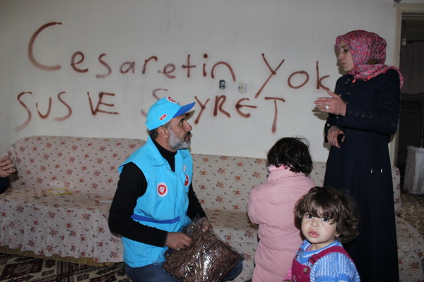 Kahramanmaraş İl Müftülüğü ve Türkiye Diyanet Vakfı görevlilerince Suriyeli mültecilere et, temizlik malzemesi ve kıyafet yardımında bulunuldu. Kahramanmaraş İl Müftülüğü