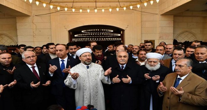 Caminin yapımında emeği geçenlere teşekkür eden Başkan Erbaş, “Milletimizi, memleketimizi, vatanımızı ve bayrağımızı daim eyle, en değerli varlıklarımıza göz diken düşmanlarımıza fırsat verme Allah'ım. Memleketimizin her tarafında hain ve düşmanlarla mücadele eden askerlerimize ve komutanlarımıza yardım eyle Allah'ım" diye dua etti.
