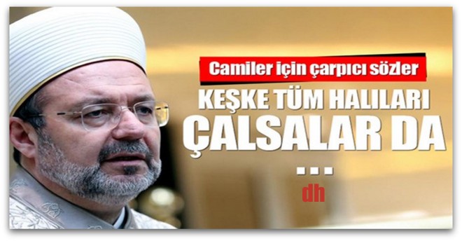 Camilerin 24 saat boyunca açık tutulmamasından duyduğu rahatsızlığı dile getiren Diyanet İşleri Başkanı Mehmet Görmez, Keşke tüm halıları çalsaydılar da camiler açık kalsa gençler Allah\'ın evine gelseydi dedi.