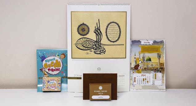 Diyanet İşleri Başkanlığı Dini Yayınlar Genel Müdürlüğü’nce yapraklı duvar takvimi, hatlı duvar takvimi, masa takvimi, üçgen masa, yapraklı çocuk takvimi, çocuklar için duvar takvimi olmak üzere 6 çeşit takvim yayımlanıyor. Yurt içi ve Yurt dışındaki takvim okuyucusu Diyanet Takvimine büyük ilgi gösteriyor. Diyanet İşleri Başkanlığı bu ilgiye cevap verebilmek için her yıl takvimleri yenileyerek daha iyi bir seviyeye ulaşma gayreti gösteriyor. Bu yıl da takvimler içerdiği muhteva zenginliği yanında, tasarım ve görselliği ile göz kamaştırıyor. Çoğu kimsenin takvimlerin her bir yaprağını zayi etmemek için ciltleyerek kütüphanesinde sakladığı takvimle ilgili olarak Diyanet İşleri Başkanlığı özel bir çalışma yaptı.