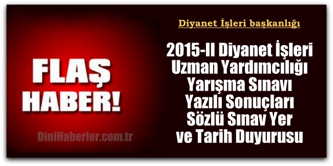 2015-II Diyanet İşleri Uzman Yardımcılığı Yarışma Sınavı Yazılı Sonuçları / Sözlü Sınav Yer ve Tarih Duyurusu