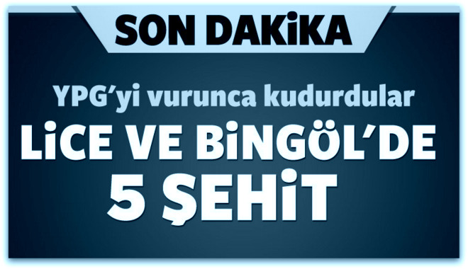 Diyarbakır’ın Lice ilçesinde PKK\'lı teröristlerle çıkan çatışmada 4 asker, Bingöl Karlıova\'da da 1 asker şehit oldu.