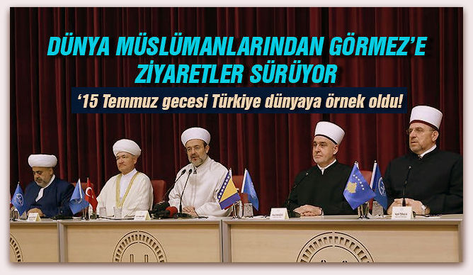 Kanlı darbe girişiminde hayatını kaybedenler için taziyede bulunmak ve Türk halkına desteklerini bildirmek için Rusya Müftüler Konseyi Başkanı Ravil Gaynuddin, Kafkas Müslümanları ve Azerbaycan Dini İdare Başkanı Allahşükür Paşazade, Bosna Hersek Reisül Uleması Hüseyin Efendi Kavazoviç ve Kosova İslam Birliği Başkanı Naim Ternava Diyanet İşleri Başkanı Prof. Dr. Mehmet Görmez’i ziyaret etti.