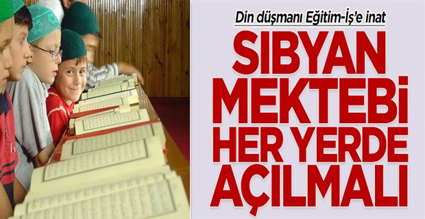 Azılı öğretmenlerin sendikası Eğitim İş ile bilimum İslam düşmanlarının hedefinde olan Sıbyan Mekteplerinin daha da yaygınlaştırılması gerektiği belirtiliyor.