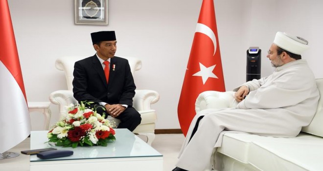 Diyanet İşleri Başkanı Görmez, Cumhurbaşkanı Widodo’ya, Diyanet İşleri Başkanlığı’nın tarihi ve yapısı hakkında bilgi verdi.