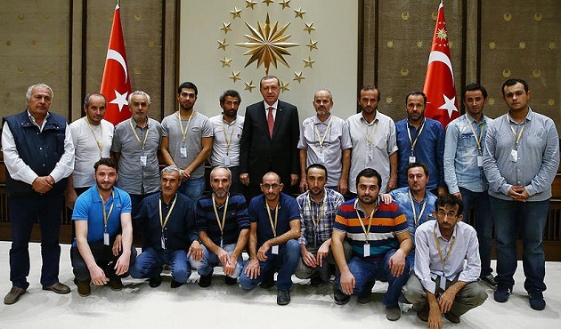 Cumhurbaşkanı Erdoğan, Irak'ta 28 gün alıkonulduktan sonra serbest bırakılan 16 Türk işçiyi Cumhurbaşkanlığı Külliyesi'nde kabul etti.