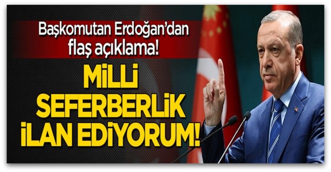 Erdoğan\'dan flaş açıklama, Milli seferberlik ilan ediyorum