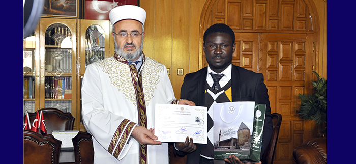 İl Müftüsü Prof. Dr. Ali Akpınar tarafından yapılan duanın ardından N'ssah'a ihtida belgesi ile Kur'an-ı Kerim ve İngilizce mealini hediye edildi.