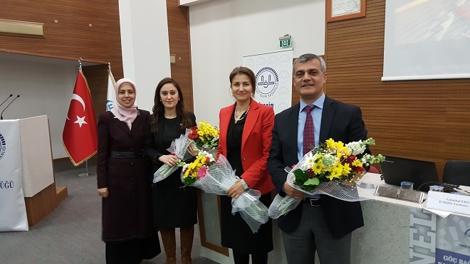 DEU İlahiyat Fakültesi Dekan Yardımcısı Doç. Dr. Bekir Zakir ÇOBAN'ın açılış konuşmasının ardından, ASPB İl Müdür Yardımcısı Ayşe ÇELİK'in “Aile ve Sosyal Politikalar İl Müdürlüğünün Kadın Mülteciler İçin Yaptığı Çalışmalar ve Kadın Mültecinin Topluma Uyum Süreci”, İl Müftü Yardımcı Vekili Gülnihal EKEN’in “İslam Dini ve Göç Bağlamında Kadın ve Dayanışma”, İl Göç İdaresi Müdürlüğü Uzman Psikolog Canan ASLAN'ın “İl Göç İdaresi Müdürlüğünün Kadın Mülteciler İçin Yaptığı Çalışmalar ve Göçmen Kadının Ruhsal Durumu” konulu sunumları ile devam etti. Panel soru-cevap kısmının ardından dilek ve temenniler ile sona erdi.