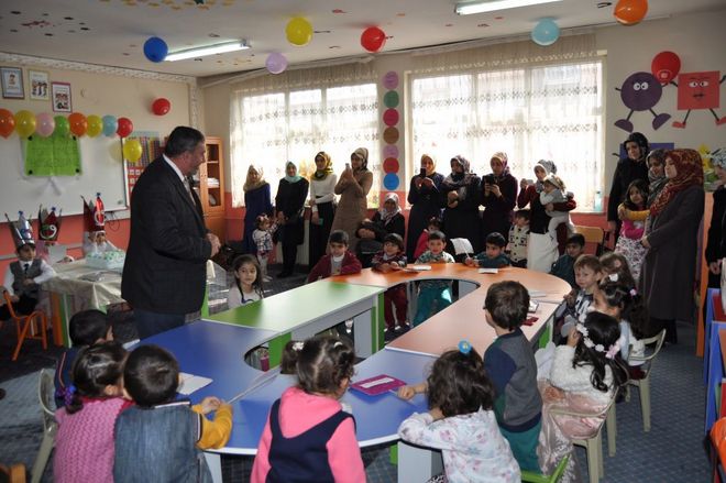 Kur’an Kursları ziyaretleri kapsamında Müftü KULAZ, 4-6 yaş öğrencilerinin Kur’an’ı Kerime geçmeleri nedeniyle öğrenci ve velileriyle bir araya gelerek kendilerine çeşitli hediyeler verdi.
