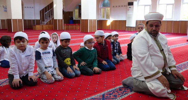 Daha sonra cami İmam hatibi Şevket Bozdoğan çocukların elinden tutarak onlara Camide namaz nasıl kılınır çocuklara uygulamalı anlattı, hep birlikte namaz kıldılar, dua ettiler. Minik öğrenciler Allah’ın isimlerini saydılar, öğrendikleri Kur’an ve dualardan okudular.
