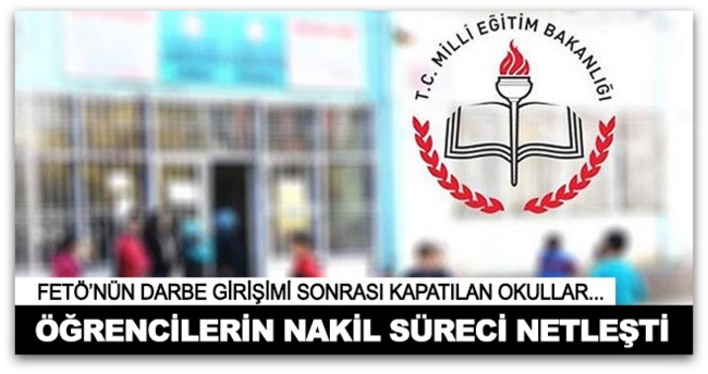 Milli Eğitim Bakanlığınca, FETÖ\'nün darbe girişimi sonrası kapatılan özel ilköğretim ve ortaöğretim kurumlarındaki öğrencilerden resmi okullara geçmek isteyenlerin nakilleri, 30 Eylül 2016\'ya kadar yapılacak.