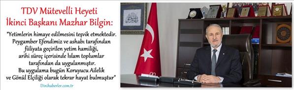 Bilgin, Kur'an-ı Kerim'de yetimlerin korunup kollanması ve haklarının korunması gereği üzerinde ısrarla durulduğuna dikkati çekerek, "Yetimlerin himaye edilmesini teşvik etmektedir. Peygamber Efendimiz ve ashabı tarafından fiiliyata geçirilen yetim hamiliği, tarihi süreç içerisinde İslam toplumları tarafından da uygulanmıştır. Bu uygulama bugün Koruyucu Ailelik ve Gönül Elçiliği olarak tekrar hayat bulmuştur" ifadelerini kullandı.