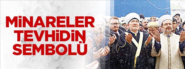 Moskova’da inşası devam eden Merkez Cami’nin minaresine alem takılması törenine katılan Diyanet İşleri Başkanı Mehmet Görmez, minarelerin tevhidin sembolü olarak göklere yükselmesi ile ucuna barışın sembolü olarak hil