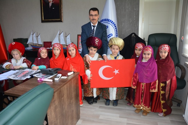 İl Müftüsü Ali Hayri Çelik Osmanlı Sultanları kıyafeti ile kendilerini ziyarete gelen mini Kur’an Kursu öğrencilerinin ziyaretinden memnun olduğunu ifade ederek, öğrencilerin vermiş olduğu anlamlı hediye için teşekkür etti. Seyit Bilal 4-6 Yaş Kur’an Kursunda yapılacak olan Kur’an-ı Kerim’e geçme merasimini katılacağını belirtti.