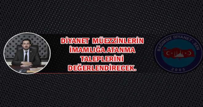 Bağımsız Diyanet-Sen Genel Başkanı Faruk Çetin “Diyanet İşleri Başkanlığı ilk defa müezzin olarak atananların imamlığa atanma taleplerini değerlendirecek” dedi.