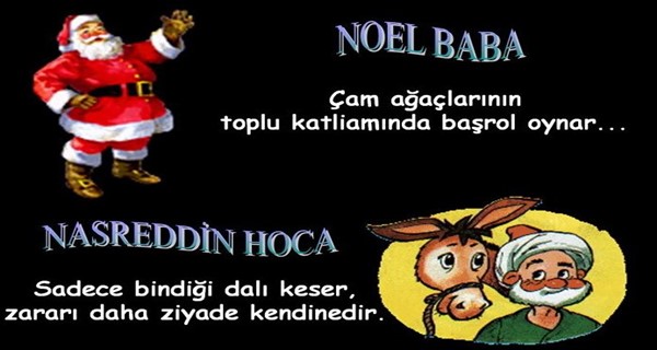 3. Noel Baba, çam ağaçlarının toplu katliamında başrol oynar... Nasreddin Hoca, sadece bindiği dalı keser, zararı daha ziyade kendinedir.