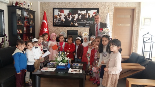 Osmangazide sayıları her geçen gün artan 4-6 yaş sınıfı çocuklardan oluşan Kur’an Kursu Öğrencileri ilçe Müftüsü Cahit ÇETİN\'i makamında ziyaret etti.