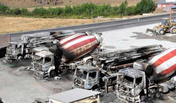 PKK beton firmasını basıp 7 aracı ateşe verdi