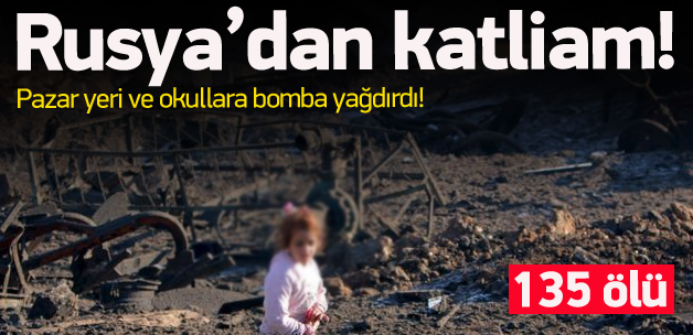 Rus savaş uçakları, Suriye\'de bomba yağdırdı. Saldırıda aralarında kadın, yaşlı ve çocukların bulunduğu 135 kişi hayatını kaybetti.