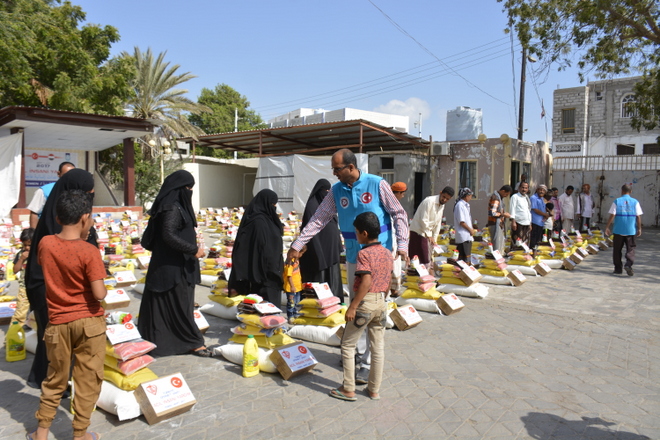 TDV, Yemen\'de 2 bin 400 muhtaç aileye gıda kolisi dağıttı.