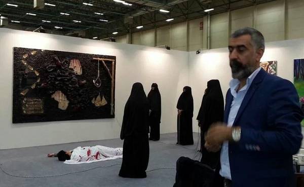 TÜYAP’ın İstanbul Kitap Fuarı ile birlikte ev sahipliği yaptığı İstanbul Sanat Fuarı’nda ressam Gökhan Aslan, çekilen acıları simgeleme bahanesiyle çarşaf üzerinden İslam'a hakaret etti.